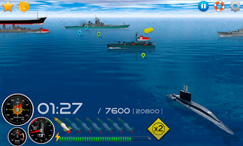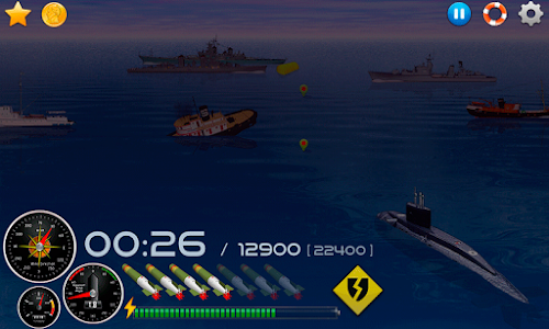 4. Damaged warships begin to shoot. click on the submarine to dive and you will be saved.