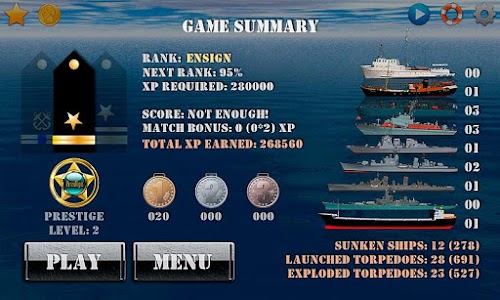 3. The larger the ship (destroyer), the more you need to spend a torpedo to its destruction.
