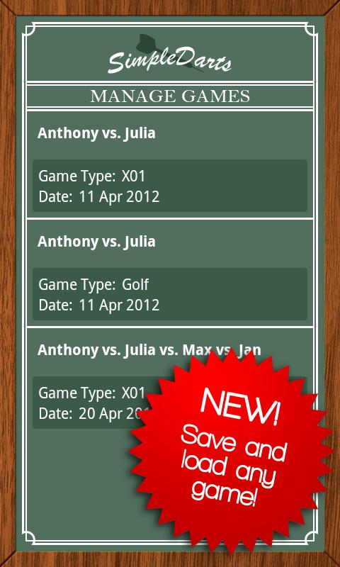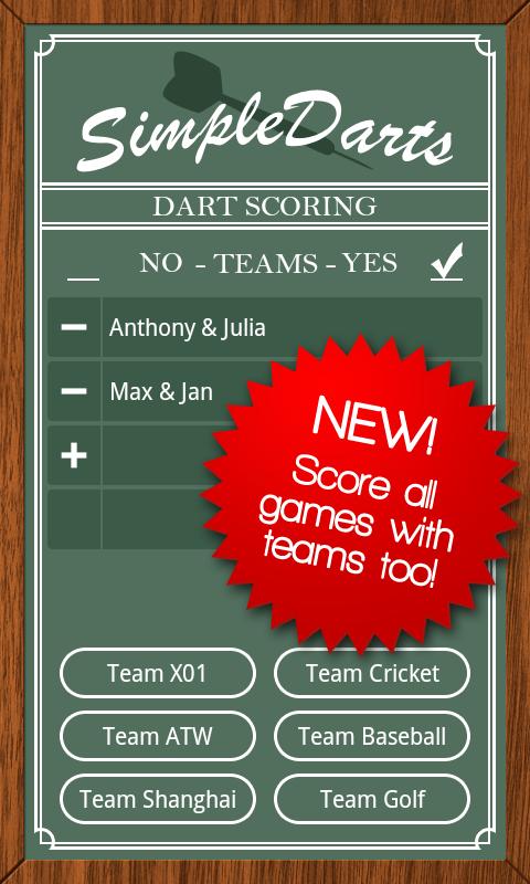 Simple Darts is new and improved! The best dart score keeping and dart game scoring application for Android is even better! Dart scorecard has never been easier. Play your favorite dart game with your friends and let simple darts track the scoring!