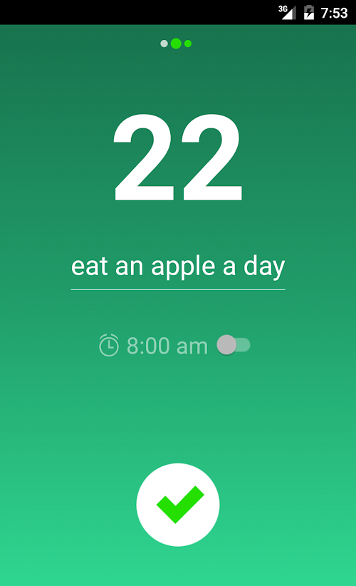 Select a simple activity that you would like to become a habit and do it daily. As you've performed the activity, tap the check button and see your streak increase. As you pass the 21 streak count barrier, you'll see the page turn green, indicating that you're now well on your way to forming a habit!