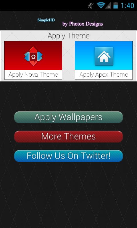 Open Simple HD App after installation and apply Apex Theme if you are using Apex Launcher or Apply Nova Theme if you are using Nova Launcher.T