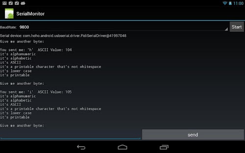 Monitor and write to USB-serial devices like Arduino over USB-OTG. This app works just like the Arduino serial monitor.