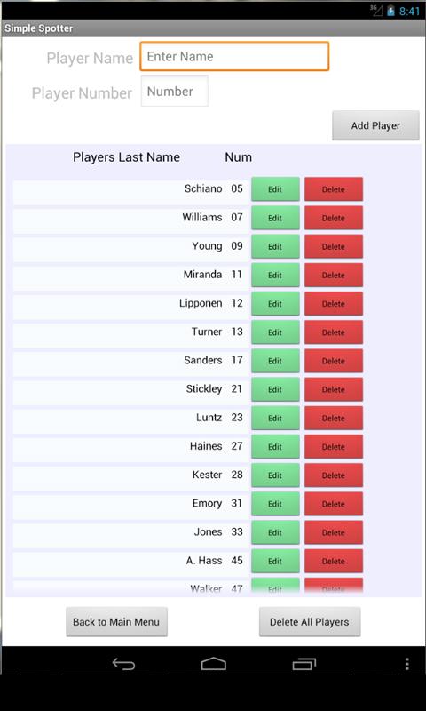 I wrote this app after spending a season as the spotter for my sons football team and realizing there is no way I would go through that nightmare again the next season. To use the app, simply add your players names and numbers. Then select the minimum number of plays each player is required to play. Now as you see the players on the field, click on their number on the screen. As you click the number, it will turn a different color and the counter will show you how many players you have selected. Once you reach eleven, you know you got them all. Hit the Next Play button and those 11 players are now marked as having played one play. If a penalty is called, simply hit the Undo Last Play button and it's as though that play never happened. After each play instead of having to select all the players again, you can select the "Select Same Players As Last Play" button and the same players will all be selected again. Now if the coach switched out one or two players, no biggie, just touch those players numbers and they will un-check and the new players will be there instead.