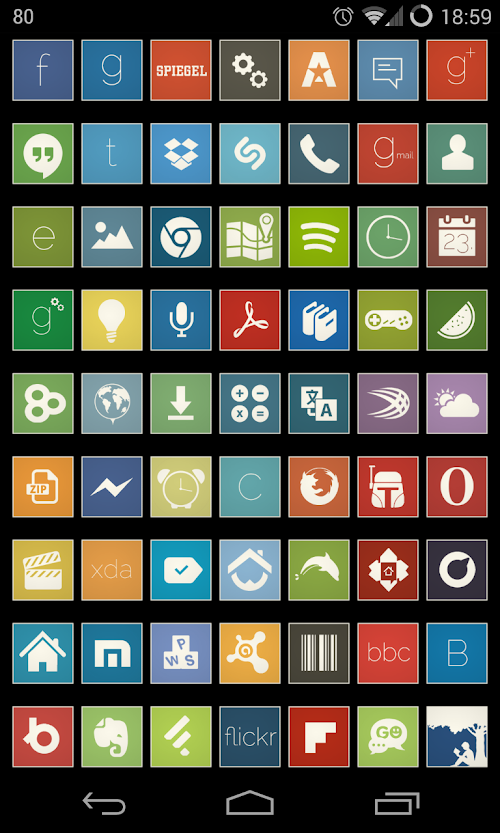 Simple Squares is an icon pack with a flat and simple design for Android-Launchers