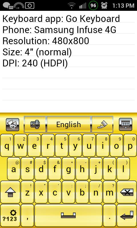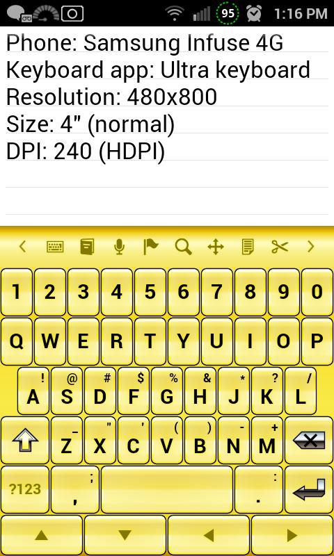 Supports all standard phones and tablets running both new and legacy Android systems (OS 1.5 and up). This skin has separate images for phones and large tablets, so the keyboard images appear very crisp and detailed on all standard phones and tablets.