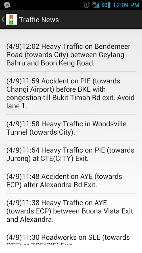 An application that displays the latest updates about traffic information and images from traffic cameras situated around Singapore. This allows motorists to make informed and timely decisions when planning their routes.