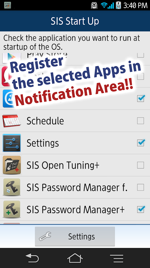 SIS Start Up is the Application for start-up-executing some Apps when Android OS is booted.