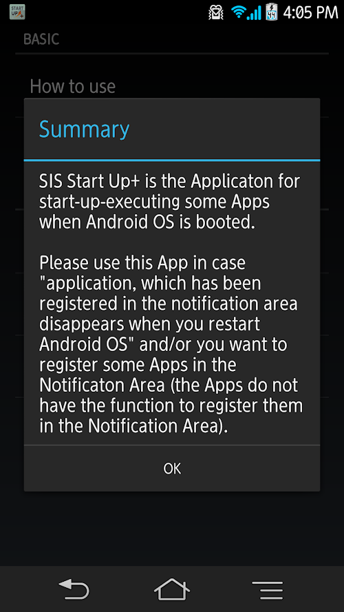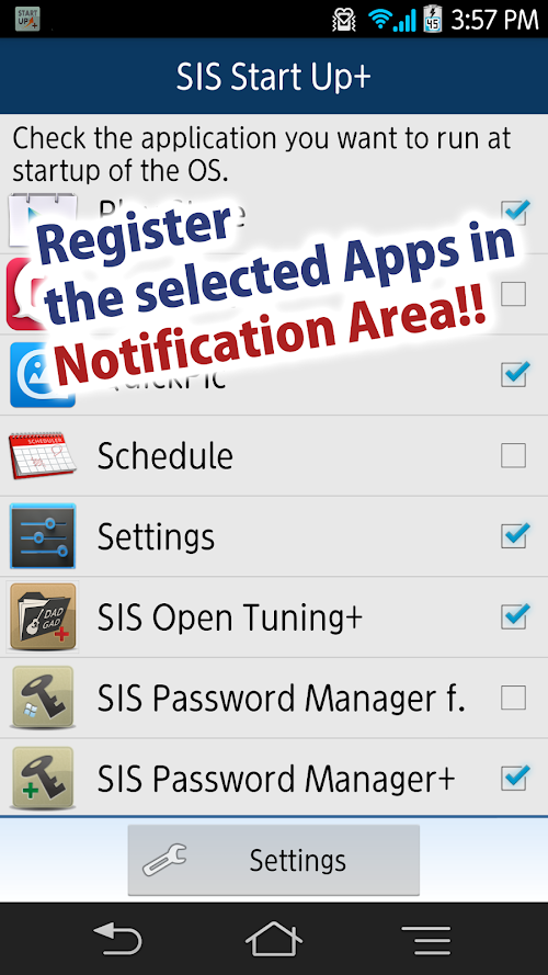 SIS Start Up Plus is the Application for start-up-executing some Apps when Android OS is booted.