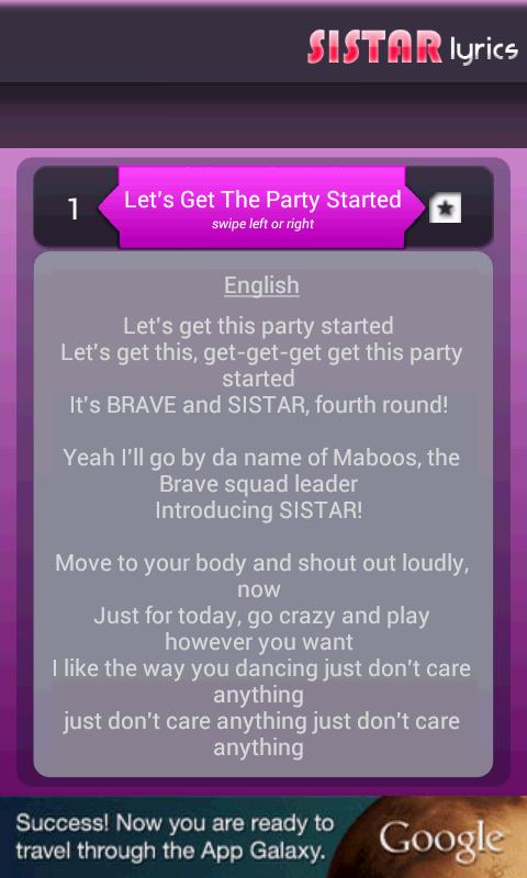 This version of Sistar Lyrics Android App comes with one universal variant which will work on all the Android devices.
