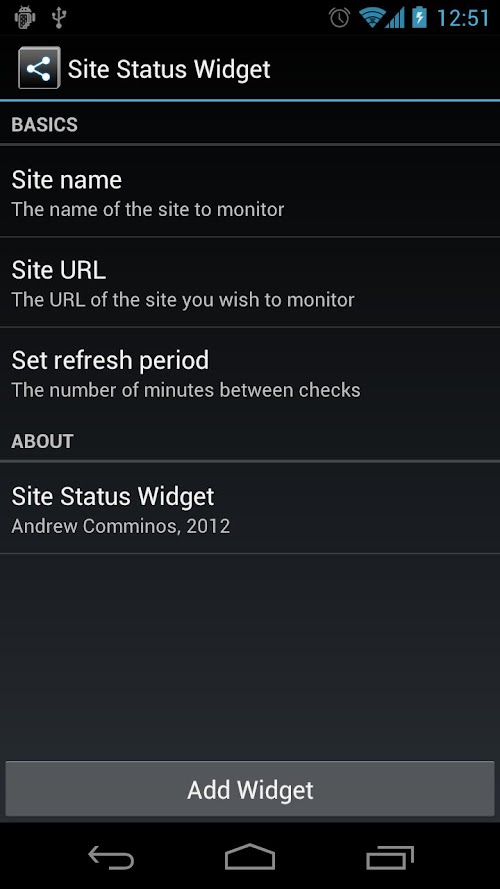 Make sure your favourite sites are online with this handy widget! Right now there is only one widget type, large, but a minified version is coming in the next update.