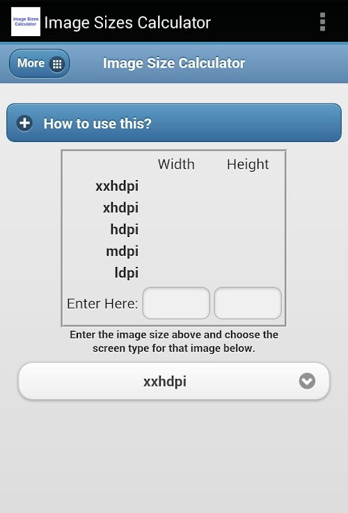 Instantly calculate the image sizes required for all android device densities like HDPI, MDPI, XHDPI and XXHDPI.