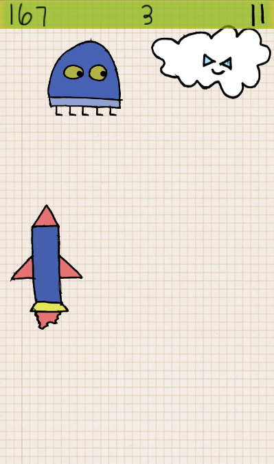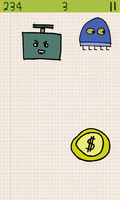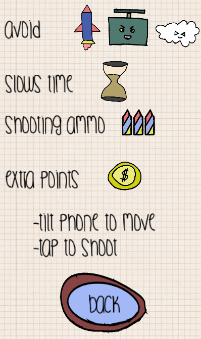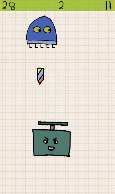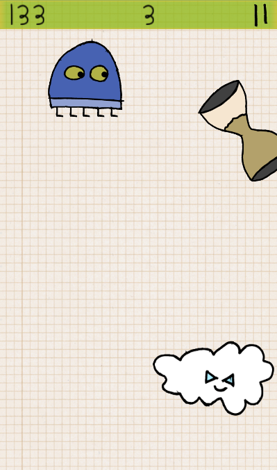 You're falling down on a sheet of paper avoiding and shooting enemies while grabbing power-ups. The longer you play, the faster it gets. How long can you last?