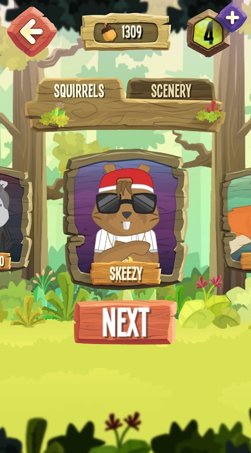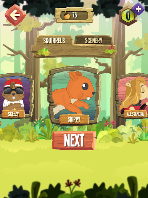 Choose between Skippy, Francesco, Surge, Momochi and more of the funniest squirrels! Pick up a stage and let’s play. Every Squirrel is different.