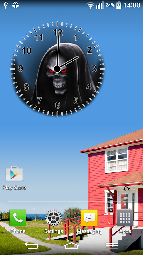 Set alarm to scary with this amazing “digital clock widget”and have the most original and mystical “alarm clock to wake you up free”. Did you know that the ominous evil skull, commonly related to death and mortality used to be associated with life, rebirth, change and even good luck? Find your lucky charm in the form of a crystal skull among the ten “widget clock” faces.You also get to follow the latest fashion trends with this stunningly beautiful and spooky time widget, since, nowadays, white, and green and even pink skulls are are quite fashionable bony symbols. Enter the world of new technology and cool gadgets with this scary, yet fancy widget pro!