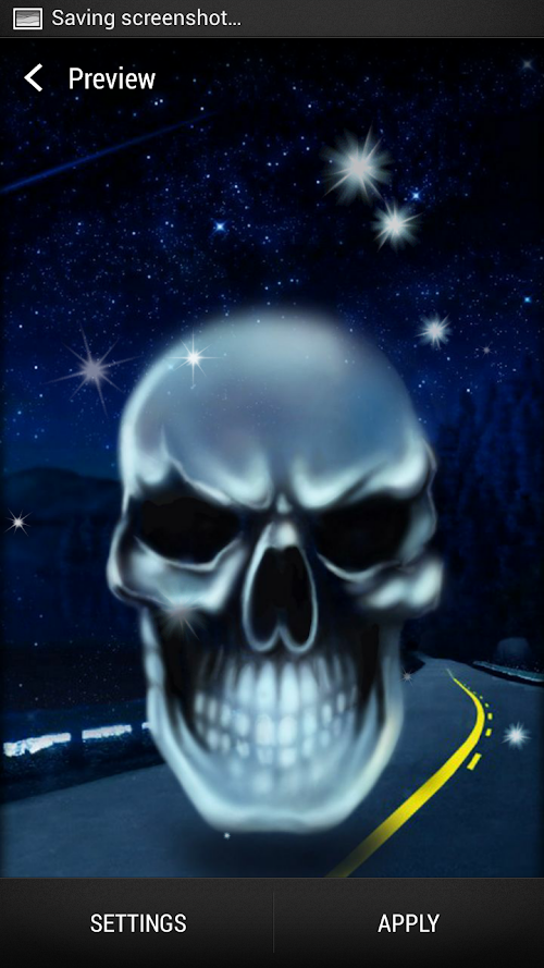 Make your phone awesome and decorate it with an amazing burning skull, or colorful green, purple or white skulls – the choice is up to you. You will not come across another cool “live wallpaper” quite like this one. “Horror movies” do not even come close to the ingenious design and creative backgrounds. Picture these amazing symbols at the bottom of the ocean, or as a mysterious shape forming in the dark night - this LWP has it all. Did you know that the ominous evil skull, usually related to death and mortality, once used to be associated with life, rebirth, change and even good luck? If you are looking for lucky charms, this amazing app for Android™ is a great choice! Nowadays, white, purple and green bony symbols are quite fashionable. Decorate your phone according to the latest fashion with the coolest background wallpaper and a girly pink skull. Do you already have a skull ring, or a skull necklace? Well, in that case, to be one of the skull girls you need to match those to your brand new cool skull pictures on your screen. You are a click away from the best “free download” ever - a spooky laughing skull can be decorating your screen right now for free. The best scary wallpaper both for boys and girls! All you need to do is to pick one of the cool backgrounds “Skulls Live Wallpaper” offers and decorate your new Galaxy mobile phone for free. Ominous or funny, abstract green, red or blue bony symbols will give you chills the second you see them on the screen. Fiery and creepy eyes blazing bright in the dark, in the middle of the road, or in the sky – “Skull Backgrounds” have everything that you may desire. This amazing “live wallpaper” will inspire fear in you, while it fascinates you with its stunning design. You'll be impressed and terrified at the same time. Enter the realm of mystery, horror and spine-chilling sights via this scary and fierce, but cool free live wallpaper. Explore the mystical world and enjoy the surreal images for free. Spooky and awesome, this application is not only an eye candy, it's a “scull candy”. Give it a try and have fun tapping on the screen in order for new scary symbols to appear. Enjoy!