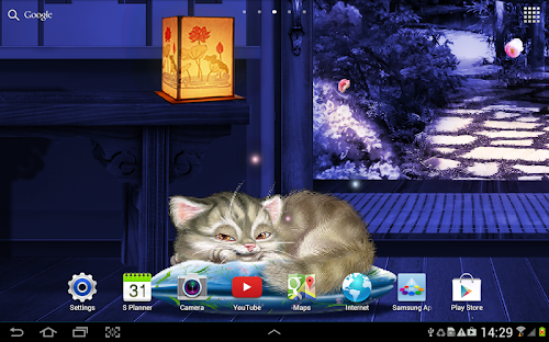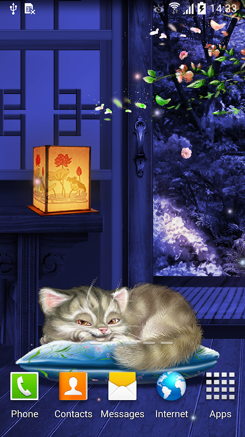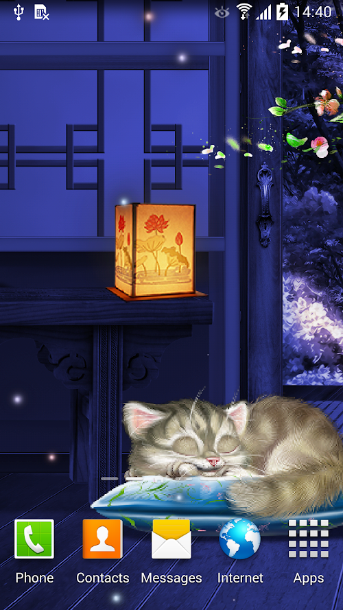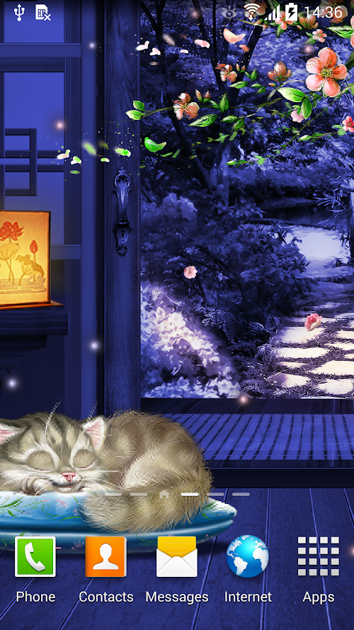 How to set animated wallpaper “Sleeping Cat Live Wallpaper” on the desktop of your phone: Home → Applications → Settings → Display → Wallpapers → Home screen wallpaper → Live wallpapers → Sleeping Cat Live Wallpaper