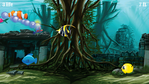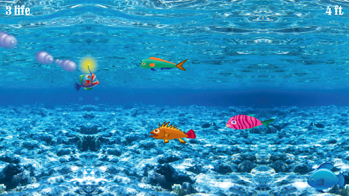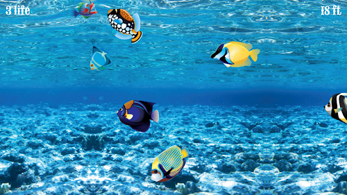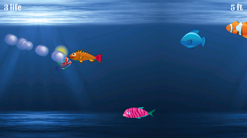 Tap the screen to wake him up and heads up so that he can dodge other fishes coming into his direction.