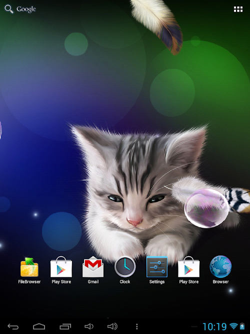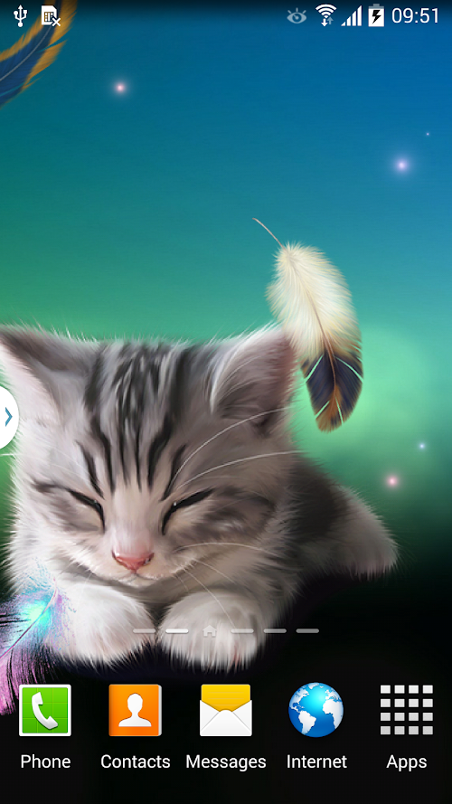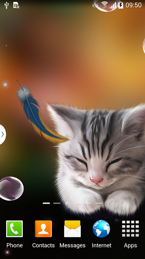 Super cute animated wallpaper "Sleepy Kitten Live Wallpaper" will lift your mood and cause lots of smiles at you and your friends. Enjoy sweet animated little sleepy kitten, soap bubbles that can be burst by touch, flying interactive feathers and glowworms.