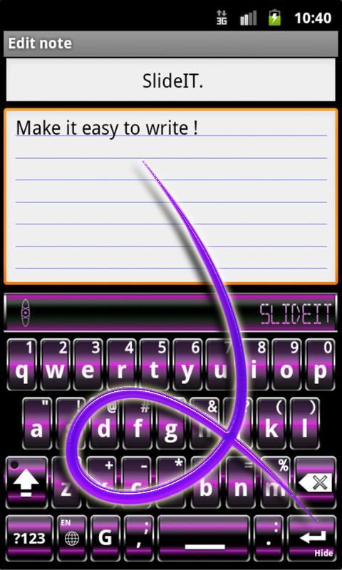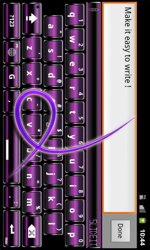 This is a skin addon to change the look of the SlideIT keyboard to have Purple digital flavor.