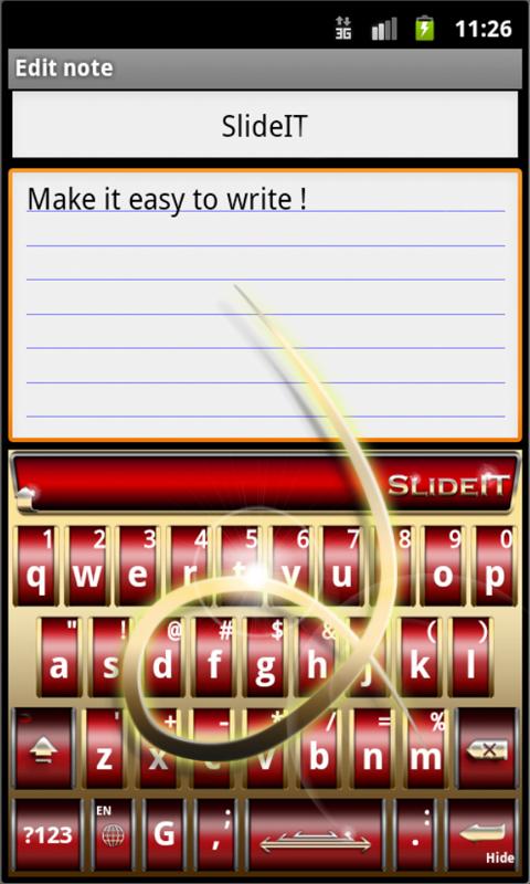 This is a skin addon to change the look of SlideIT keyboard to have Sparkly Gold and Silver Look.