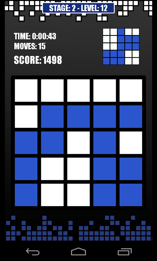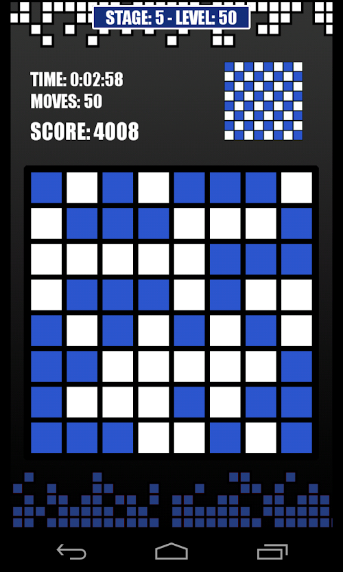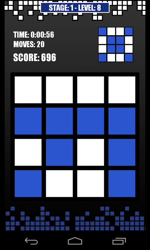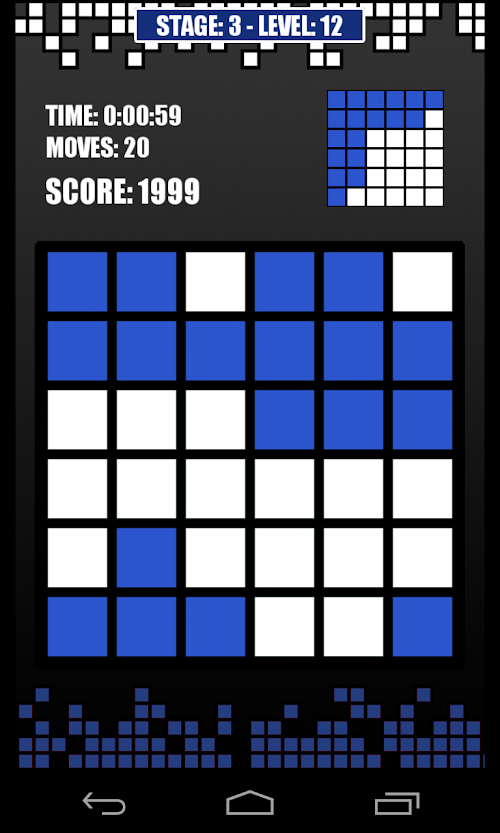 The objective of the game is to reorder blue and white squares by moving rows and columns. It's similar to those parking car games (or something like Unblock Me game) but in this game number of moves are not infinite. To make things harder, time you have for finishing a level is also not infinite. You must develop some skills to finish all levels.