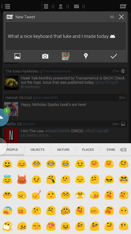 As I said above, you won't be able to see all the emojis on the device! Sometimes they will show up as a blank space and usually they will show up as black and white image of the selected emoji. THIS IS FINE. THEY WILL SEND CORRECTLY to all your friends that have support for them (again, iOS users and any Android messaging apps that have the emojis in them).