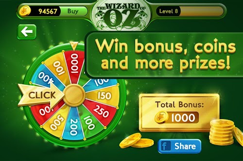 With different levels and Oz themed slots, daily bonuses, mini-games, and free coins the fun doesn’t stop in Wizard of Oz Slots!