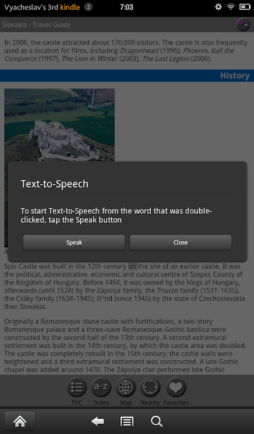 This fully-functional guide is absolutely free. The full version (only $4.99) adds Text-To-Speech and expands articles with more information about attractions, history, culture, itineraries, phrasebooks and more. Listen to complete articles on the go with Text-To-Speech: double-tap on a word to start Text-To-Speech from the selected word or select Menu > Start Text-To-Speech.