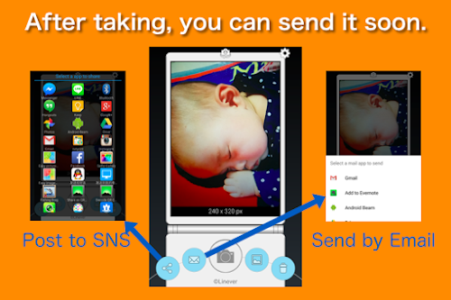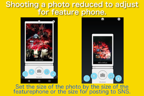 You can set the size of the photo by the size of the featurephone or the size for posting to SNS.
