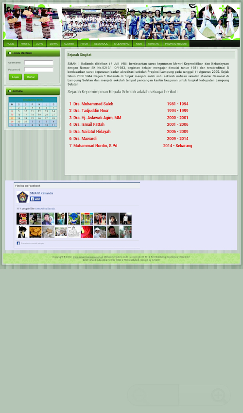 look this nowSMAN 1 Kalianda established July 14, 1981 by decree of the Minister of Education and Culture of the Decree No. No.0219 / O / 1983, teaching and learning activities started in 1981 and accredited B by virtue of a decision of the school accreditation bodies Lampung Province on August 11, 2005. Since the year 2006 SMA Negeri 1 Kalianda designated into one national standard school pilot schools in South Lampung and become a school canteen pencangan honesty to South Lampung district