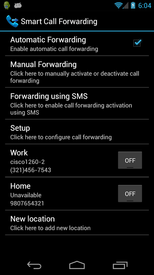 NOTE: ****Automatic call forwarding based not on GPS location but of WiFi network connection so WiFi network connection is required for automatic call forwarding.****