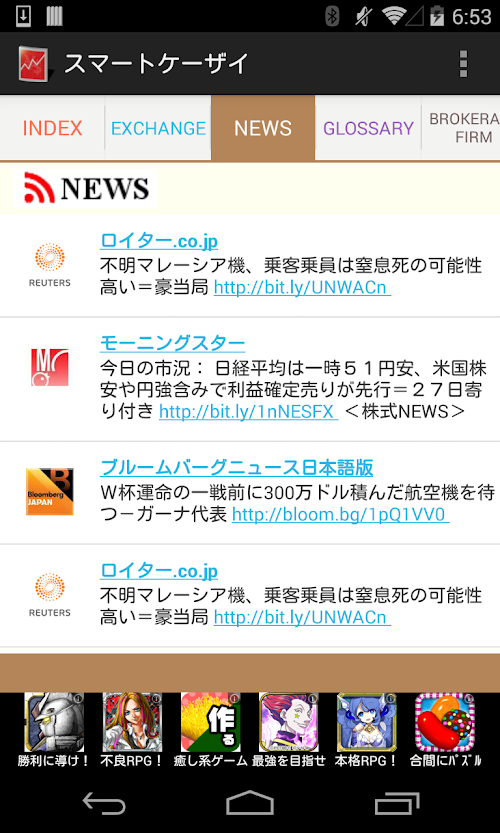 This app can be easily checked indexes,exchanges, the economic news,stock glossary and brokerge firm data.