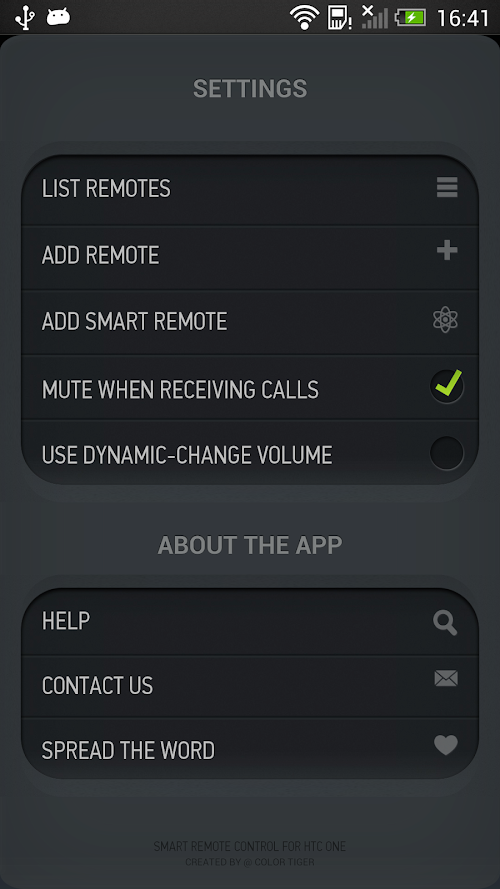 Extra flexibility in customizing tasks, like sending any command you choose (like MUTE or POWER OFF) at a time of your choosing, or when your phone rings. Feel free to send us other actions upon which you would want to send IR commands!