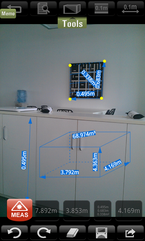 1.User use camera function in Smart Laser Distance Meter app to take the measuring scene.