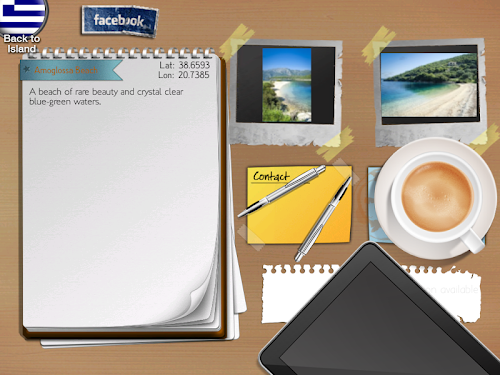 Smart-Meganisi offers a complete and accurate information system for the Greek Meganisi island displayed on a 3D-background. Smart-Meganisi is a Location-Based, multimedia iPad App providing information on travelling, accommodation, entertainment, leisure, history, weather, health, public issues, and many other.
