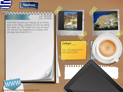 Smart-Santorini is created by the SMART-ISLANDS project. The SMART-ISLANDS products are operational applications on Android Tablets offering smart information to island visitors and citizens through state of art technology.