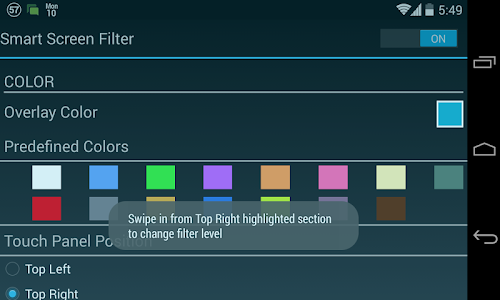Ever felt the brightness of your device is still harsh while reading a book or watching a movie, and wanted to control screen appearance based on your need, you can do that now with easy to use "Smart Screen Filter"