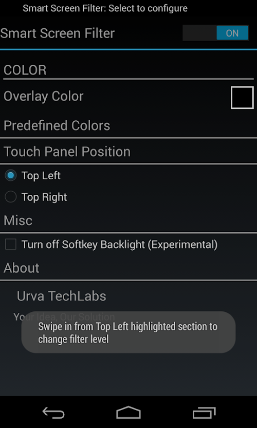 This version of Smart Screen Filter Android App comes with one universal variant which will work on all the Android devices.