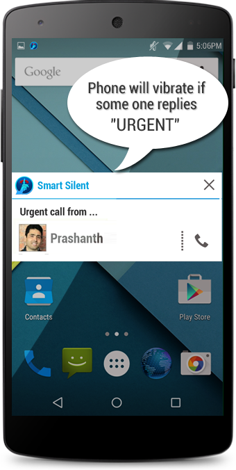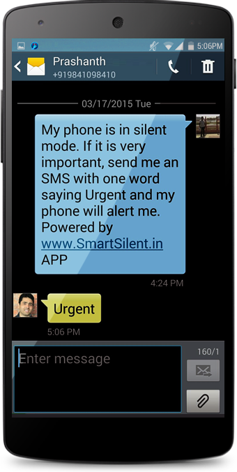 You will no longer be disturbed by unwanted calls and chat notifications but alerted only for urgent calls. Because the Smart Silent Auto Responder will send auto SMS text message to your callers, informing them that your phone is in Silent Mode till the expiration period. If it is really urgent, they should reply by SMS saying URGENT and you will be alerted.