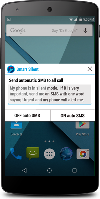 You will no longer be disturbed by unwanted calls and chat notifications during your sleep time but alerted only for urgent calls. Because the Smart Silent Auto Responder will switch ON at night time when you go to bed and it will send auto SMS text message to your callers, informing them that your phone is in Silent Mode till the expiration period. If it is really urgent, they should reply by SMS saying URGENT and you will be alerted.
