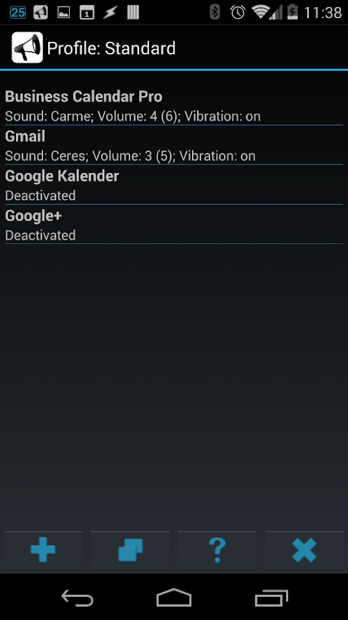 ✔ Android 4.3 and above: central sound-, volume- and vibration control for ANY installed App (e.g. Email, Whatsapp, calendar …); use text filters for e.g. special calendar events, certain email senders etc.
