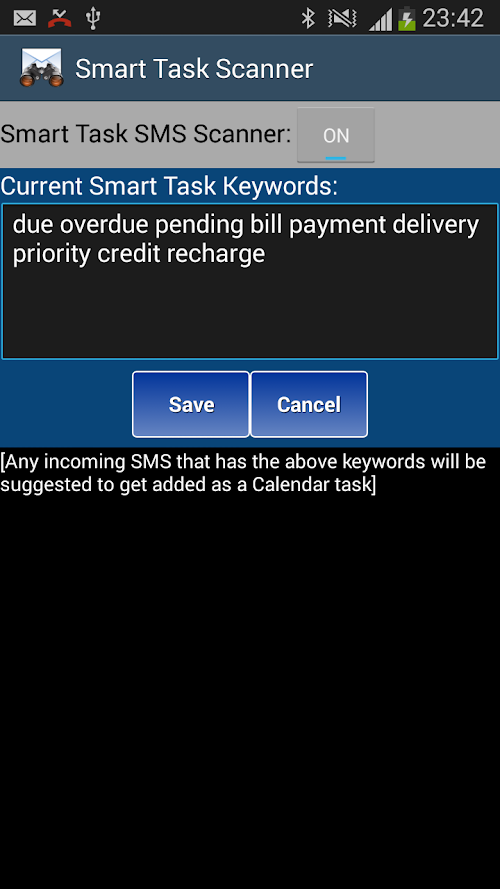 Scans the incoming SMS messages based on your predefined keywords.