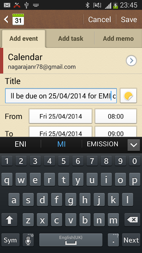 Suggests you to add those filtered messages as Calendar events for future followups and reminders...!!