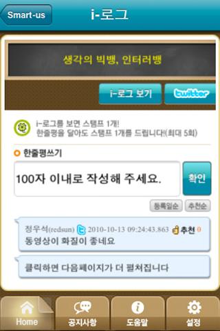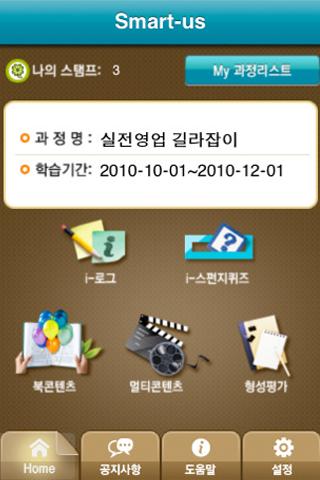 Smart-us는 언제 어디서나(Anytime, Anywhere) Online(Web)과 Mobile( 스마트폰)을 통해 몰입형 콘텐츠를 적시적으로(Just in time) 학습하고, SNS(Social Network Service)를 통해 손쉽게 지식을 공유하며 협력학습을 통해 현안을 창의적으로 해결하도록 만들어진 모바일 기반의 스마트러닝 서비스입니다.
