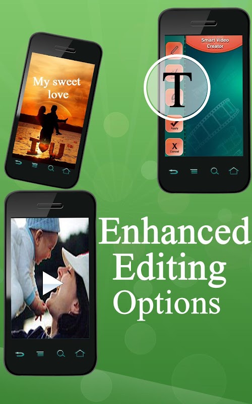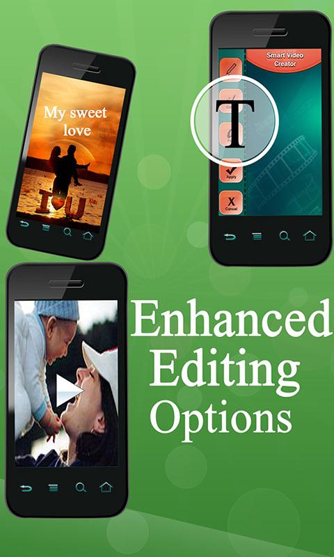 With this latest Video effects editor, producing of videos becomes simpler. This video trimmer and audio cutter app gives various options of photography. The only app to provide the feature of watermark for your memories ( Captured Videos/Videos) where either you can set image or text as watermark, facility to add voice to an image. Create your own style video or movie with sequence of images. Thus this Video Show bring excellent video editing experience to you.