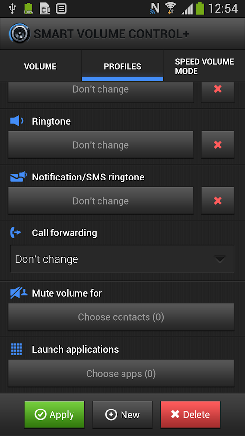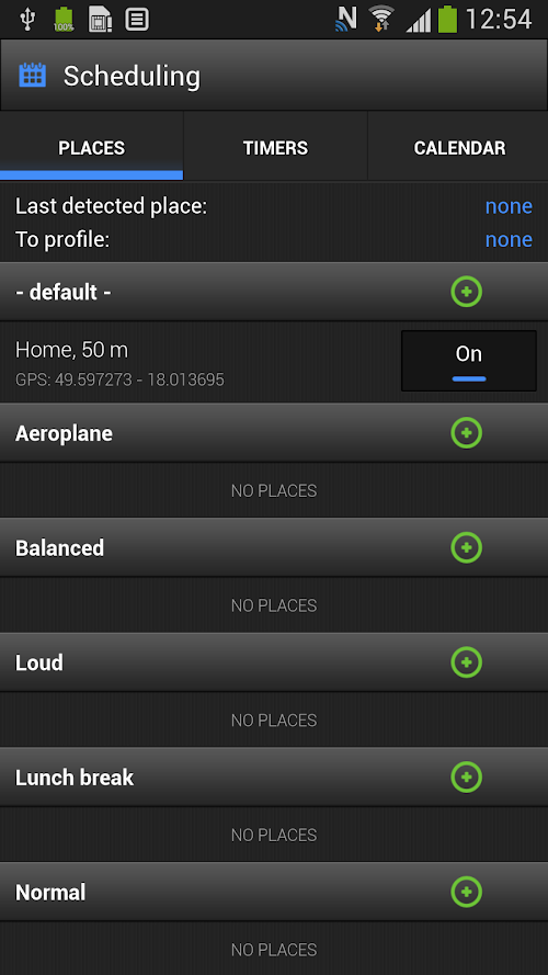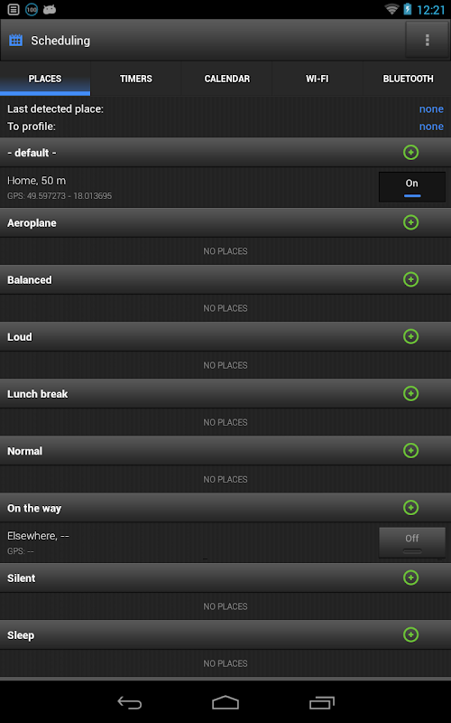 - switch profiles by Timers, Locations, Calendar, Wi-Fi and Bluetooth