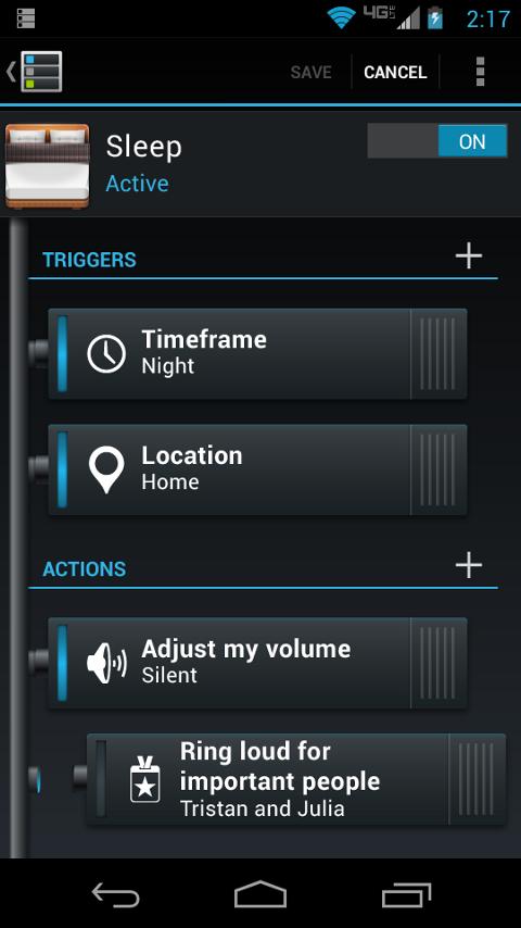 It’s your phone; customize it to fit your life. Do you like your display turned down and your ringer turned up when you get home? SMARTACTIONS can remember that and do it for you. Or, maybe you like to see maps and GPS when you step into your car. Yep, SMARTACTIONS can help there too.