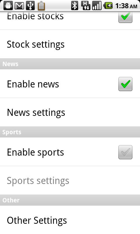 - Your Google calendar appointments for the day (requires Android 2.0+)
