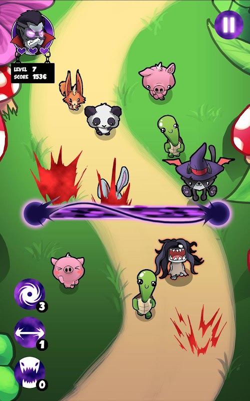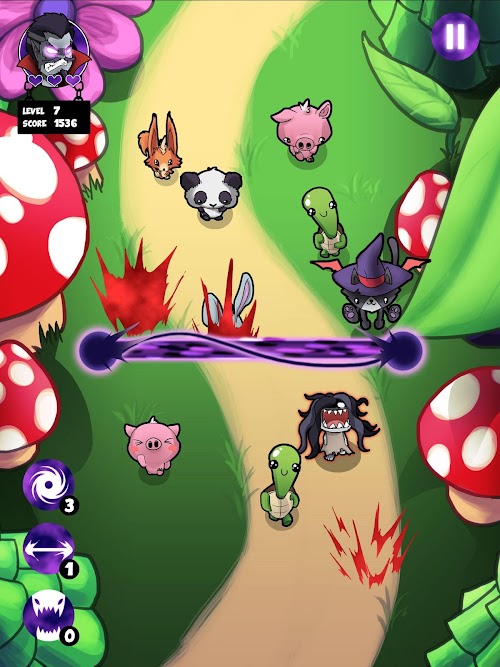 Prince of darkness and lord of infernal creatures, your castle is under the attack of the terrible, monstrous, cataclysmic… army of tiny cute animals from the wood next door… okay, said like this, it doesn’t seems so bad but in fact it’s a serious problem. If you want to still be taken seriously by the people you rule over, you’ll have to smash all of these adorable fur balls. It’s time to work!