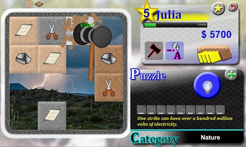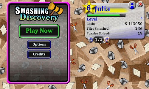 Smashing Discovery is a puzzle game where you smash tiles to uncover the hidden picture. Your goal is to solve the puzzle word by using clues found in the picture. The more of the picture you are able to discover, the easier it will be for you to solve the puzzle word.